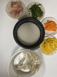 材料:人参、白菜、キノコ類、大豆ミート、鶏皮、もやし、砂肝