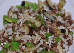 材料:牛挽肉、ナス、ピーマン、ごはん