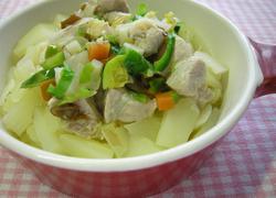 材料:あさり、芽キャベツ、豚肉、大根、にんじん、アスパラガス、たけのこ、干しエビ、みょうが、なめこ