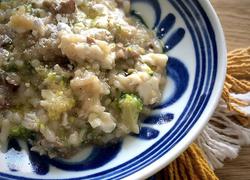 材料:牛バラ肉、ブロッコリー、キャベツ、かぼちゃ、卵白、炊いた白米、モッツアレラチーズ