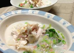 材料:鶏もも肉、炊いたご飯、ブロッコリー、人参、千切りキャベツ、ナチュラルチーズ、ターメリック(無くてもOK)、エキストラバージンオリーブオイル、ヤギミルクか豆乳、お肉の茹で汁、薄力粉